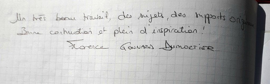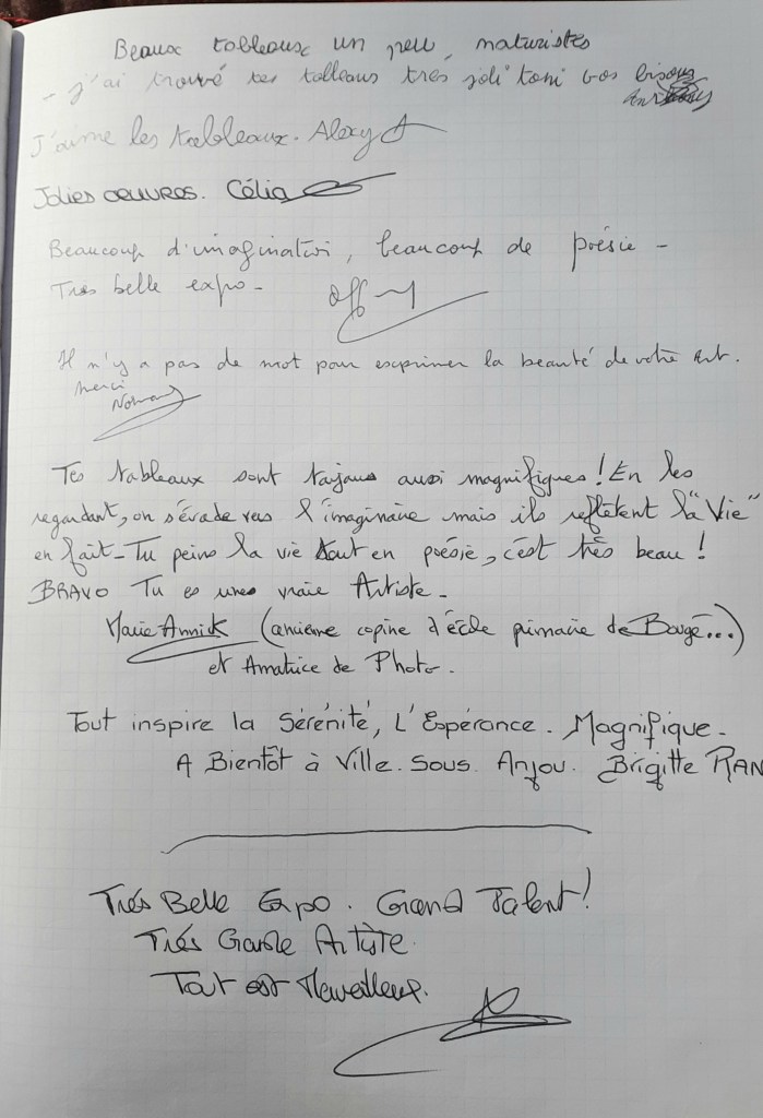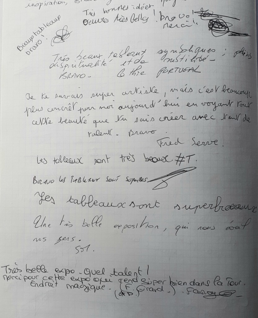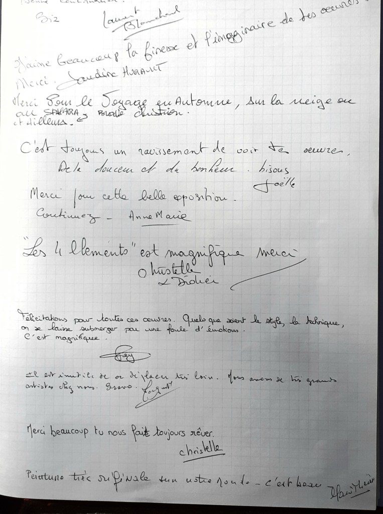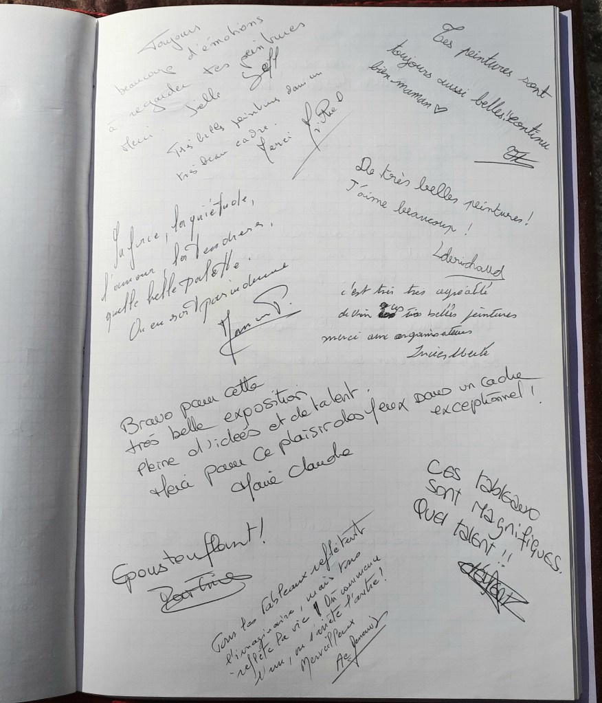 Merci à vous tous pour vos messages laissés dans mon livre d’or lors de mes expositions personnelle. C’est du bonheur